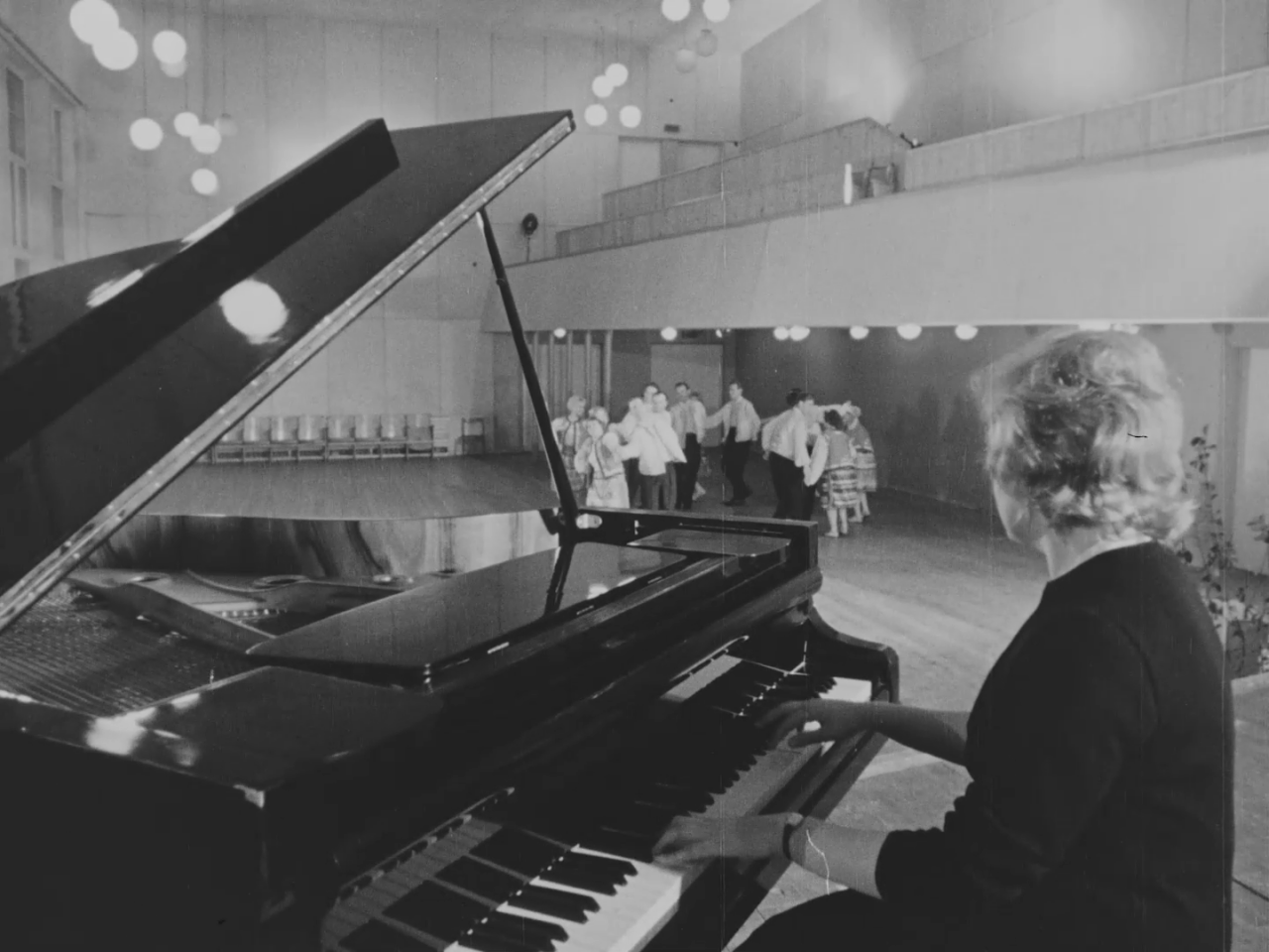 Võru rajooni kultuurimajas Kannel toimuvad ettevalmistused laulupeoks. Esinevad koor ja rahvatantsijad.