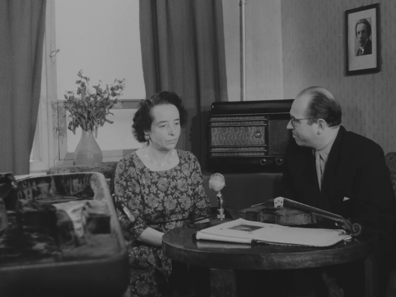 Viiuldaja Eduard Sõrmuse lese Virginia Sõrmuse vastuvõtmine Tallinna lennujaamas. Külaline on toonud kaasa Eduard Sõrmuse viiuli. Sõrmuse portree, gravüür ja maal temast, ajalehe väljalõiked muusiku elust ja kontserttegevusest. Teatri- ja muusikamuuseumi direktor Harri Kõrvits vestleb külalisega, Virginia Sõrmus räägib oma suurepärastest muljetest Eestis