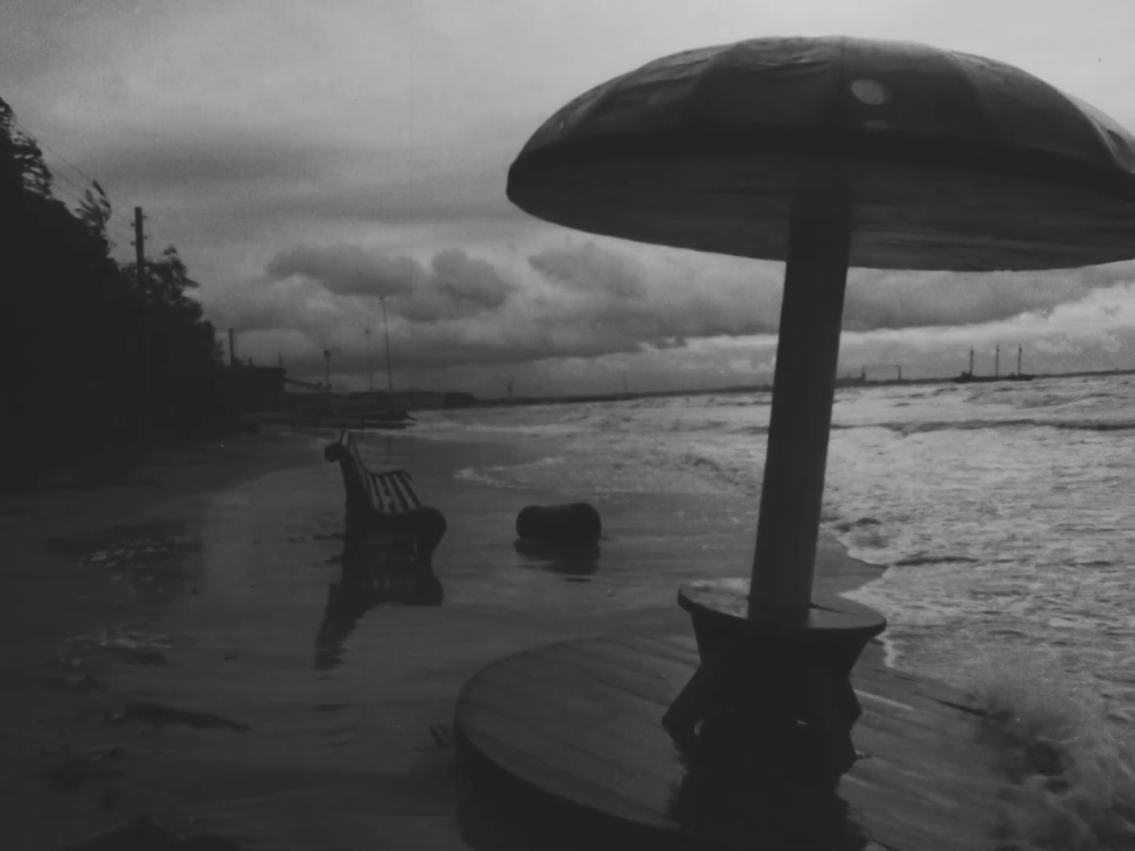 Ülevaatepala sügisesest tormist Tallinnas. Kaader merre ulatuvatest terrassiastemetest, mille vastu murduvad lained kõrgele üles paiskuvad. Vaated keset lainete möllu asetsevale pargipingile ja supelranna rajatistele. Pirita tee käsipuust kannab tuul laineid kauge kaarega üle otse kaamera suunas. Sealsamas üleujutatud sõiduteel on seiskunud veoauto ja külgkorviga mootorratas. Üks paljasjalgne autojuht on avanud oma sõiduki kapoti ning kuivatab riidenartsuga mootorit.