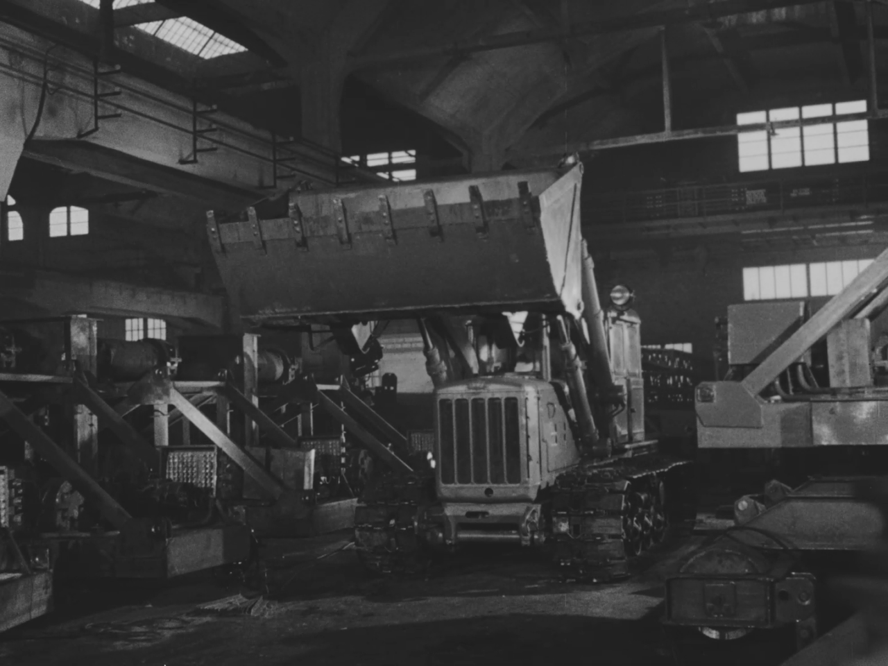 Tallinna mehaanikatehases valmis universaallaadija D-442 esimene eksemplar. Peatehnoloog Rudolf Siht ja peakonstruktor Meinhard Ikmelt jälgivad uue laadija kontrollkatsetusi.