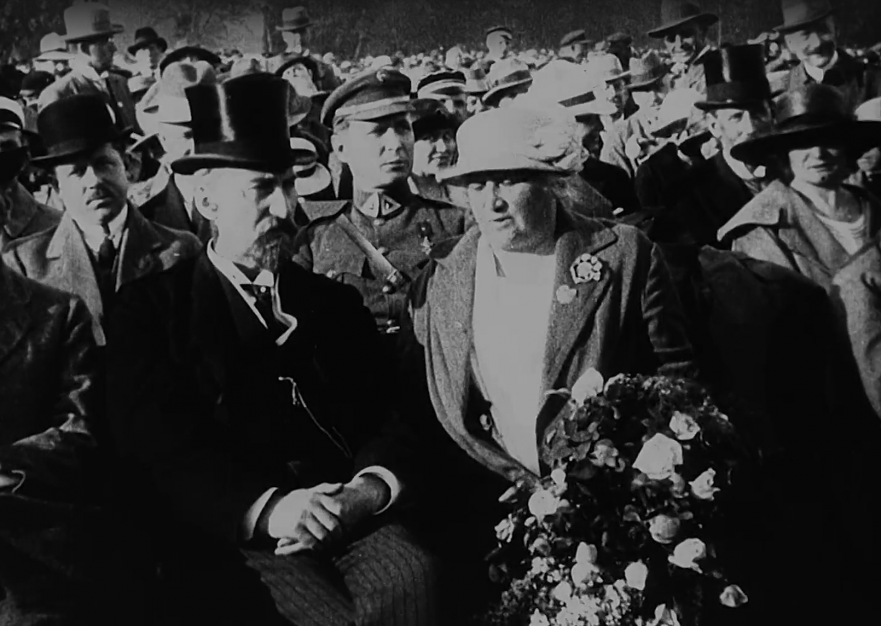 Riigivanem Juhan Kukk avab laulupeo. Juhan Simm ja Anton Kasemets juhatavad üldkoore. Eduard Knude juhatab ühendatud pasunakoore. Georg Reder juhatab sõjaväe ühendorkestrit. Miina Hermann (Härma), August Topman, Karl Leinus, Tuudur Vettik juhatavad koore. Vaated esinejatele ja kuulajatele. Ekraanil laulupeo rongkäigu korraldaja kolonel Aleksander Simon, arhitekt Karl Burman, ehitusettevõtja Hans Sinisoff.