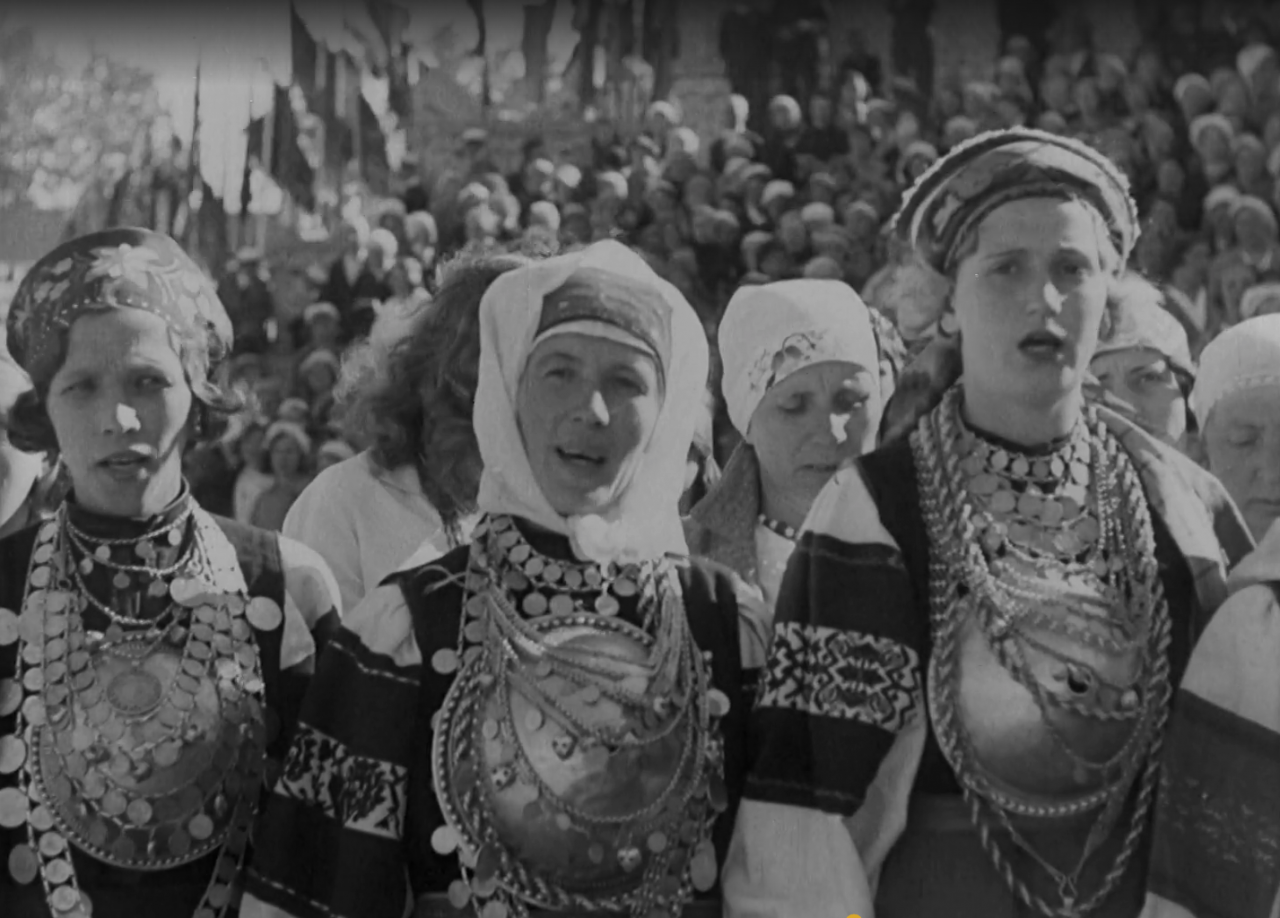 Eesti X üldlaulupidu Tallinnas. Laulupeoliste rongkäik läbi linna, tänavad on täis laulupeolisi tervitavat rahvast. Üliõpilaskorporatsioonid ja “Estonia” Selts rongkäigus, Läti naiskoorid rahvariietes. Rongkäiku tervitavad tribüünilt Läti president Albert Kviesis ja Eesti riigivanem Jaan Tõnisson. Lauldakse Eesti Vabariigi hümni. Eesti riigivanem Jaan Tõnisson peab kõnet. Läti riigipea Kviesis tervitab lauljaid eesti keeles. Eesti rahvalaulude ettekandmine enam kui 20.000 laulja poolt.