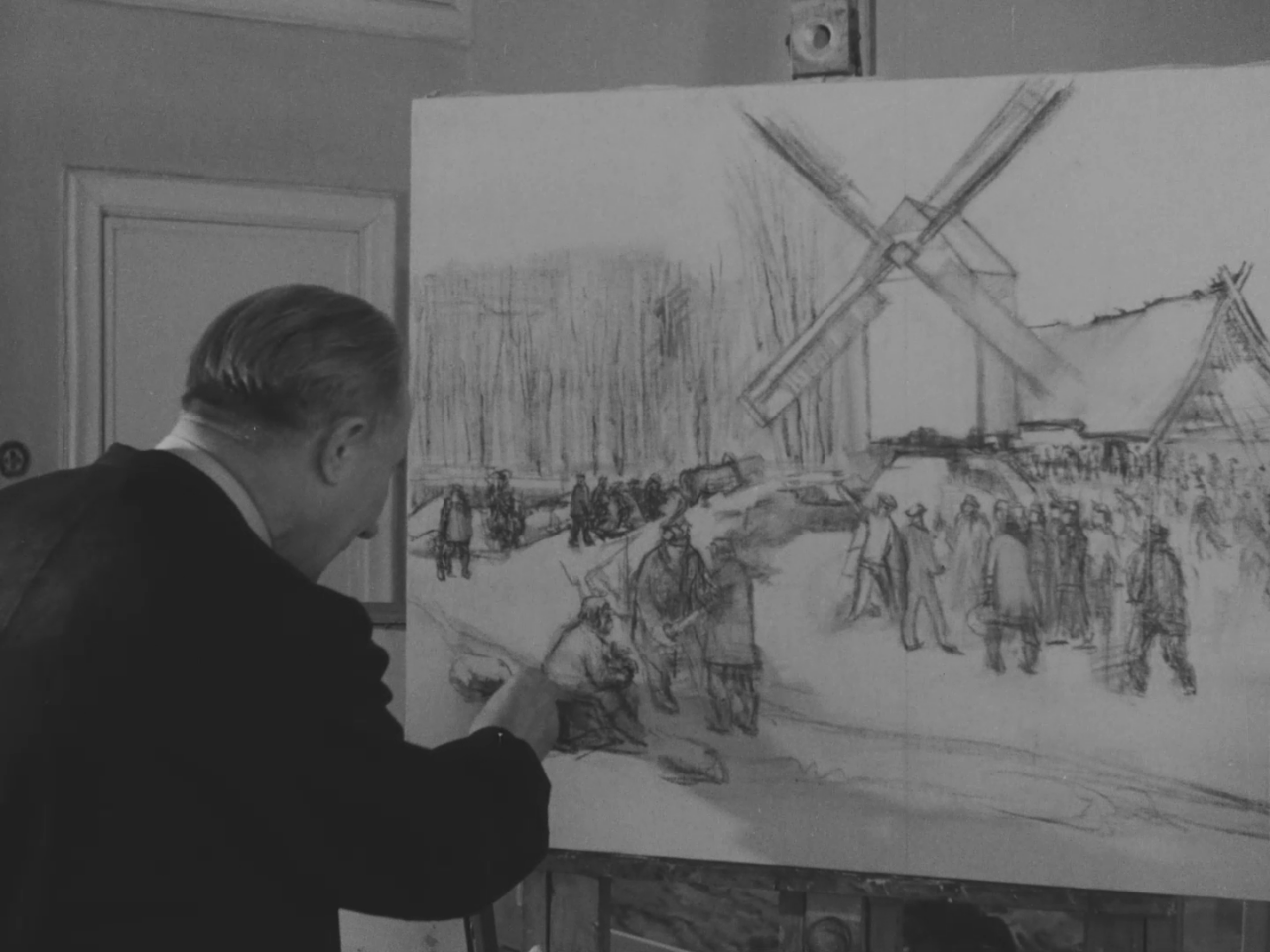 Tartu kunstnikud puhkehetkel ja töötamas uues Tartu kunstnike majas. Uues hoones on näitusesaal, puhketuba, kaks üldateljeed, 12 elukorterit ja 19 individuaalateljeed.